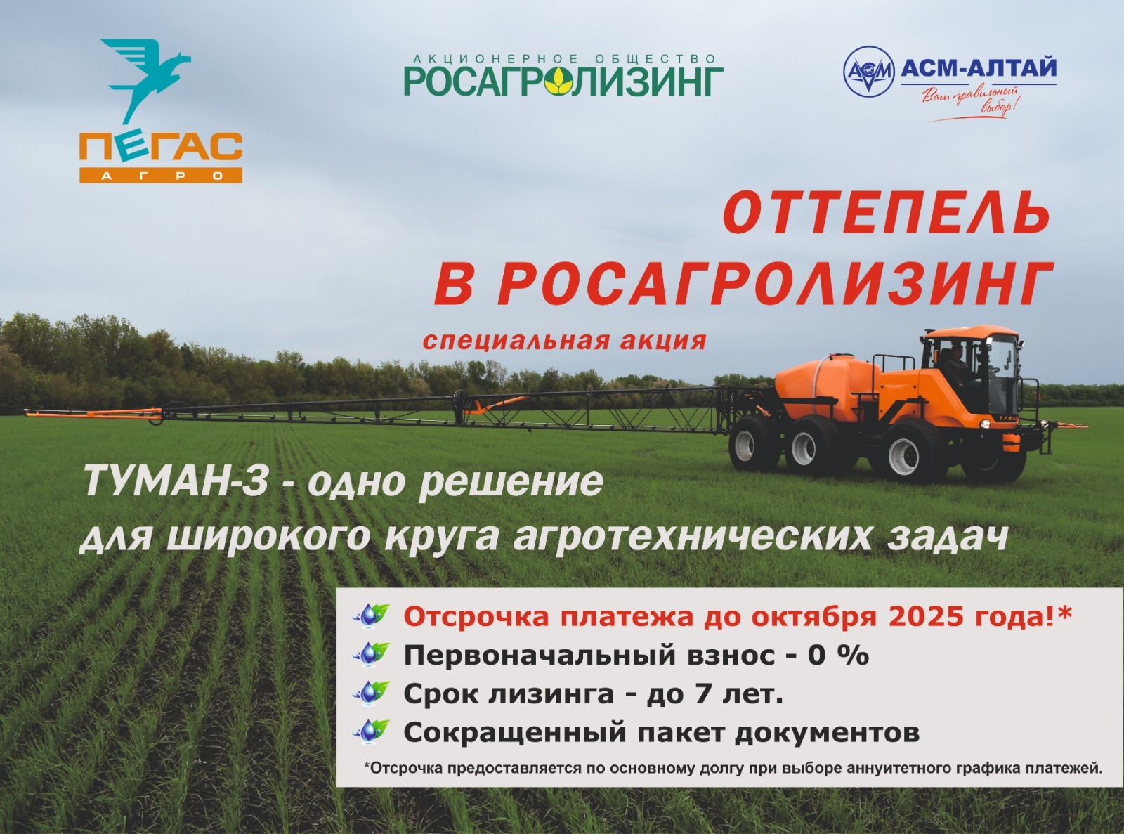 •Расширенная гарантия – 3 года или 3000 мото-часов. Производитель отмечает, что все опции, входящие в юбилейную комплектацию, обойдутся дешевле в комплекте, нежели по отдельности. Также Петербургский тракторный завод обещает создать для юбилейного КИРОВЦА особый дизайн. Подробности пока держат в тайне. Напомним, что для клиентов «АСМ-Алтай», которая является официальным дилером бренда КИРОВЕЦ в Алтайском крае, действуют специальные условия приобретения сельхозтехники по программам «ФКМ Лизинг» на 2025 год: Аванс: от 0 до 49%;*